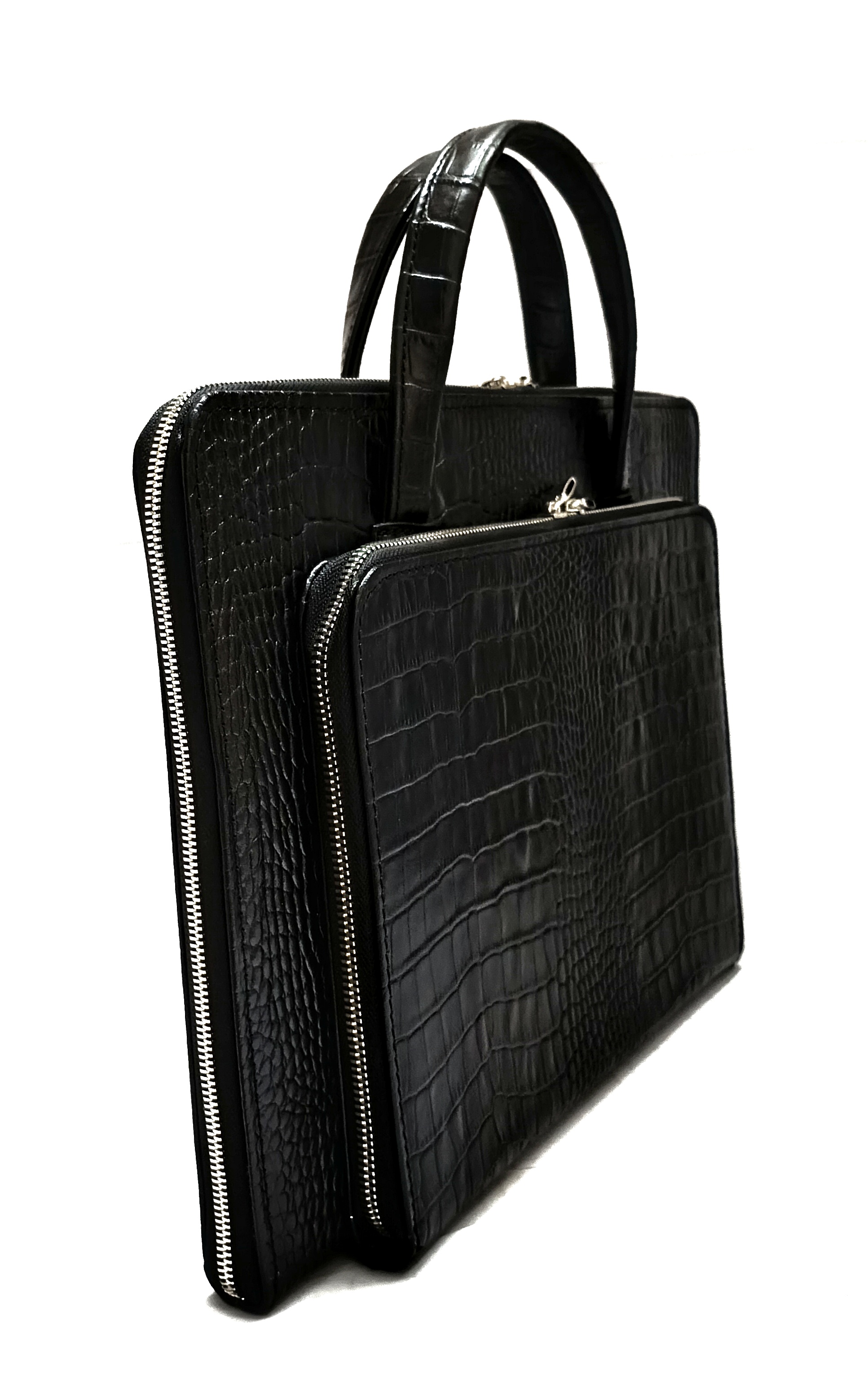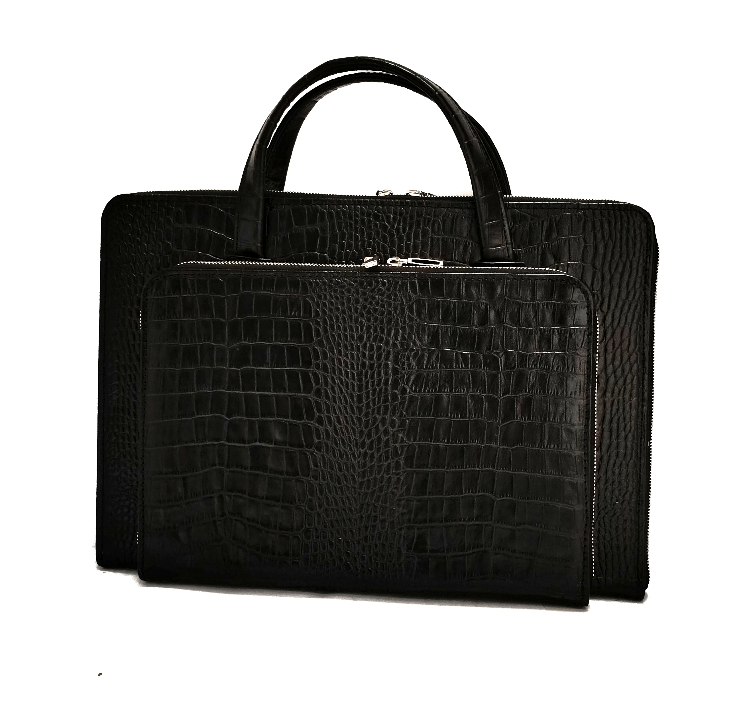 چرم روکو با طرح برجسته و جلوهای لوکس، ظاهری رسمی و خاص به کیف میبخشد، در حالی که چرم فلوتر با بافت طبیعی و نرم، حس اصالت و دوام بالا را به همراه دارد. استفاده از زیپ فلزی مقاوم و روان علاوه بر امنیت بیشتر، کیفیت و ماندگاری محصول را تضمین میکند.
