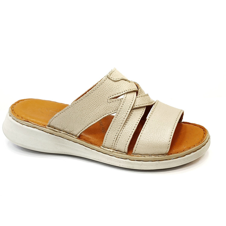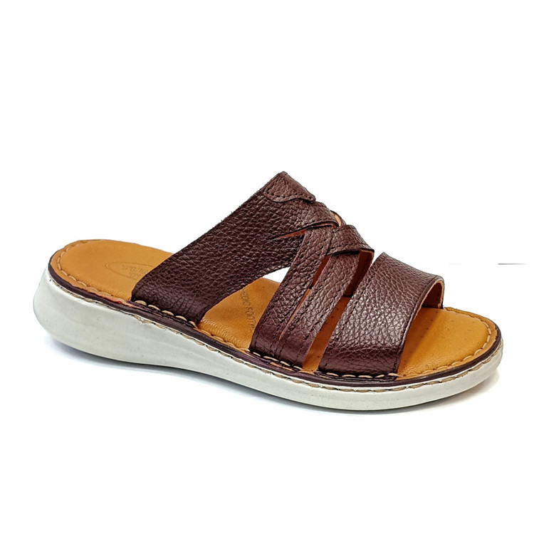 زیره این مدل از جنس پییو (PU) ساخته شده که علاوه بر وزن سبک، مقاومت و انعطافپذیری بالایی دارد. کفی چرم طبیعی تنفسی باعث گردش بهتر هوا در داخل صندل شده و از تعریق و خستگی پا جلوگیری میکند. همچنین آستر چرمی نرمی و راحتی بیشتری را هنگام استفاده فراهم میکند.