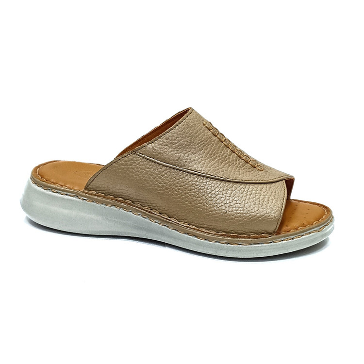 زیره این مدل از جنس پییو (PU) ساخته شده که علاوه بر وزن سبک، مقاومت و انعطافپذیری بالایی دارد. کفی چرم طبیعی تنفسی باعث گردش بهتر هوا در داخل صندل شده و از تعریق و خستگی پا جلوگیری میکند. همچنین آستر چرمی نرمی و راحتی بیشتری را هنگام استفاده فراهم میکند.